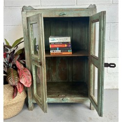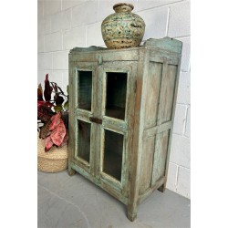 This elegant Indian cabinet showcases understated craftsmanship and timeless character. Made from solid wood, its softly vintage grey/blue coloured weathered finish highlights natural grain and texture, creating a refined yet authentic presence.