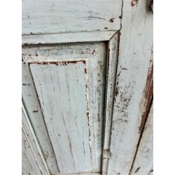 A tall, slim wooden cabinet with a softly weathered finish and simple, functional form. Crafted from solid wood, the surface shows pale blue tones with areas of natural wear, giving the piece a calm, timeworn character.