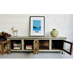 The solid timber construction and low profile make it ideal as a TV unit, media console, or storage cabinet in living spaces, hallways, or commercial interiors.
