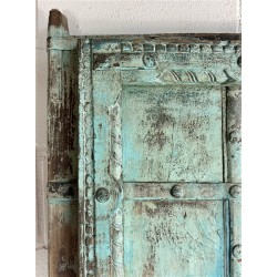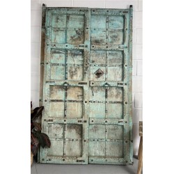 Make a bold statement with this authentic vintage wooden door, finished in beautifully aged turquoise tones with natural patina and rustic metal accents.