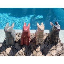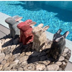 Cute rabbit wooden statue, hand painted.