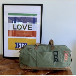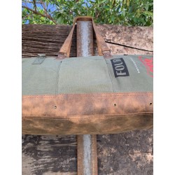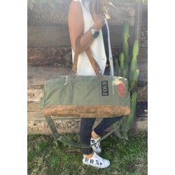 Travel bag with full leather base & new military green canvas.