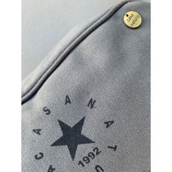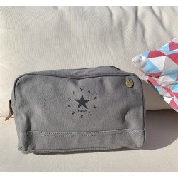 Bolso neceser de tela gris.