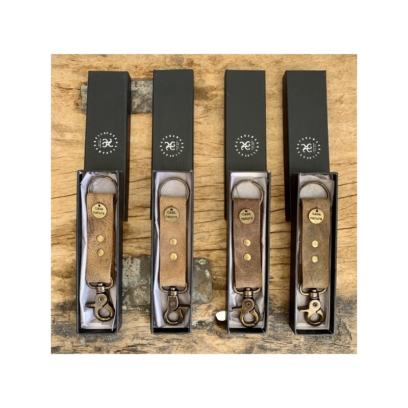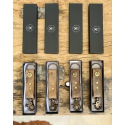Set de 4 llaveros de piel, gancho y anillo de llavero de metal, cada uno mide aprox 16 cm x 3 cm.