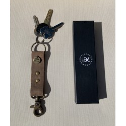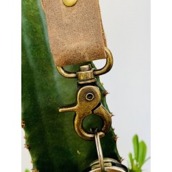 Llavero de piel, gancho y anillo de llavero de metal, cada uno mide aprox 16 cm x 3 cm.
