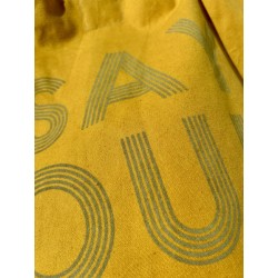 Material: Hecho con tela nueva con un lavado vintage, así cada bolso es original y diferente. Asas y borde de piel.