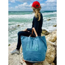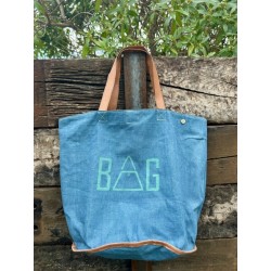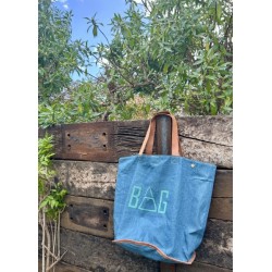 Material: Hecho con tela nueva con un lavado vintage, así cada bolso es original y diferente. Asas y borde de piel.