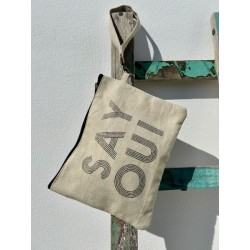 Nos preguntan mucho qué nos inspira y este impresión, como utilizamos también en los bolsos más grande, queríamos mostrar lo que para nosotros es uno de nuestros puntos de inspiración: Francia y el idioma francés. Nos encanta perdernos en este mensaje básico: ¡DI SÍ! Esta impresión es mostrar un compromiso con los valores y la estética de Casa Natura, que se inspira en la belleza de la naturaleza y promueve la sostenibilidad. Este clutch es un reflejo de la identidad de la marca y una declaración de estilo con un toque de conciencia ambiental.