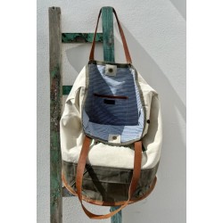 Hecho con tela nueva con un lavado vintage, asi cada bolso es original y diferente.
