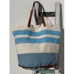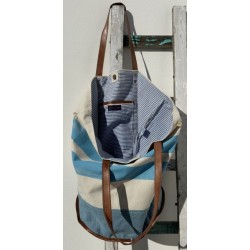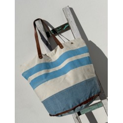 Material: Hecho con tela nueva con un lavado vintage, así cada bolso es original y diferente. Asas y borde de piel.