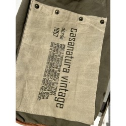 Color: Lona color verde militar vintage con bolsillo abierto y estampa en negro anthracita.