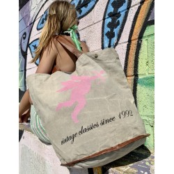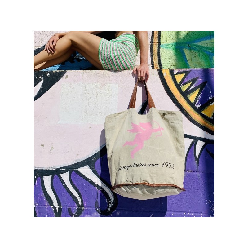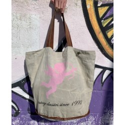 Hecho con tela nueva con un lavado vintage, asi cada bolso es original y diferente.