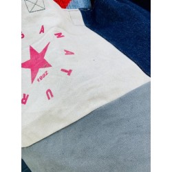 Color: Arena, azul jean y azul Klein con impresión en rojo