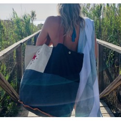 El bolso KOBE SNR15 de Casa Natura es una elegante combinación de dos tonalidades de azules y el color arena. Con una estrella roja impresa sobre este fondo, que también podríamos denominar blanco roto, se le añade cierta especialidad a esta colección. Los colores azules. simboliza la fusión del cielo y el mar en el infinito. Los azules, en su armoniosa paradoja, nos evocan constantemente la conexión entre estos dos elementos naturales. Este bolso es el complemento perfecto para llevar contigo la belleza del cielo y el mar, a donde quiera que vayas. Descubre la magia de KOBE SNR15, donde la naturaleza y el estilo se unen en perfecta armonía.