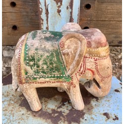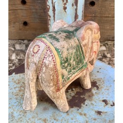 Estatua de elefante de madera tallada a mano intrincadamente.