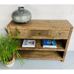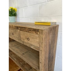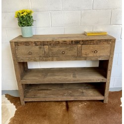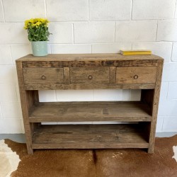 Aparador funcional con 3 cajones y 2 estantes largos.