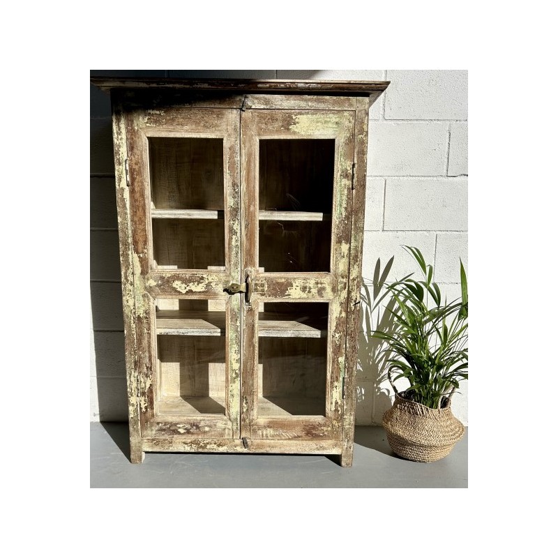 Maravillosos y únicos paneles de vidrio en las puertas. Dos puertas de vidrio con tres estantes funcionales en el interior.